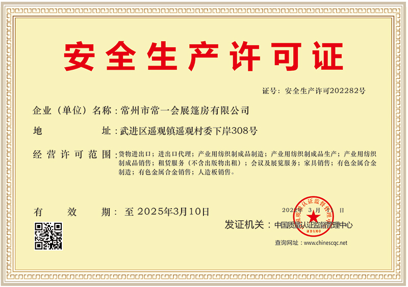常州市常一會展篷房有限公司(簡稱常一篷房),創立于2006年,坐落于中國制造名鎮江蘇省常州市武進區遙觀鎮,公司占地面積近萬平方米,距離常州機場,高鐵常州站,常州長途汽車站僅半個小時路程,交通十分快捷。我公司地處滬寧高速(G42)橫山橋出口處,滬武高速(S38)戚墅堰、遙觀、橫林出口處,G312國道遙觀段,S232省道遙觀段,常州東環線遙觀段設置了標準化廣告指路牌,物流交通非常便利,以方便國內外客戶......